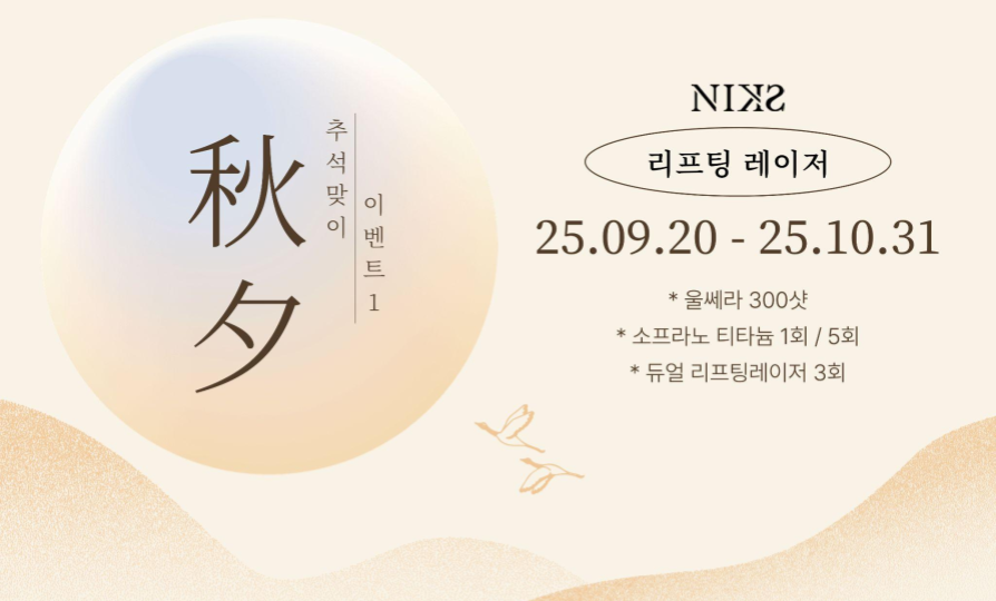 [NIKS] 10월 맞이 이벤트 첫번째 페이지 정보 작성자 최고관리자 댓글 0건 조회 3,758회 작성일 25-07-18 17:29 목록 답변 본문 이전글[NIKS] 10월 2차 추가이벤트 25.07.31 다음글[NIKS] 10월 맞이 이벤트 두번째 25.07.31